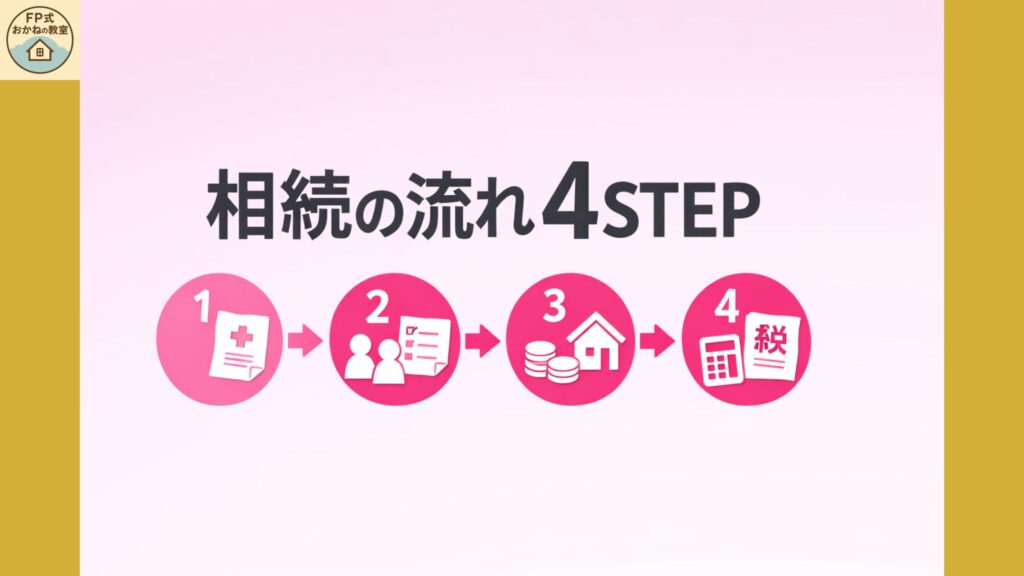 結論から言うと、相続は次の4段階で進みます。